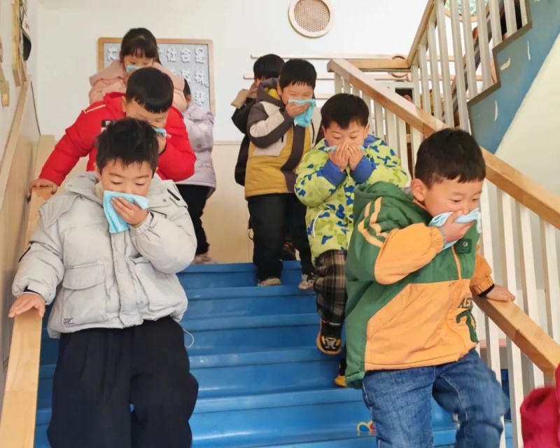 消防演练中,随着警报声的响起,老师们迅速做出反应,沉着冷静地带领幼儿手拿湿毛巾,捂住口鼻,以弯腰跑的方式按照指定路线向安全区域进行应急疏散。到达操场集合点后,各班教师迅速清点班级幼儿人数,安抚幼儿情绪,并向总指挥报告本班疏散情况,确保每一位幼儿和教职工都安全撤离。防震防踩踏演练中,随着警报声的响起,孩子们立刻停止一切活动,在老师的迅速组织下,蜷缩身体、降低重心、双手护头或用枕头护头、弯腰,按照逃生路线快速有序地紧急撤离到幼儿园操场上。
