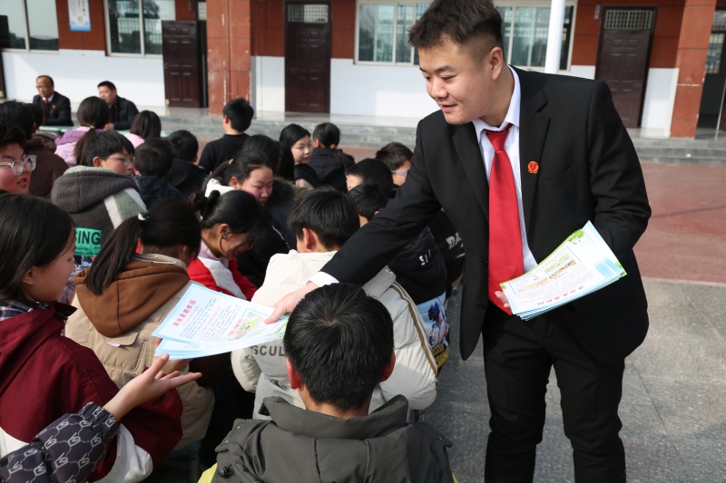 2月27日,镇平法院卢医法庭干警先后走进卢医镇何营村小学、郭岗村小学开展“送法进校园”活动,为师生们送上一堂生动的法治教育课。