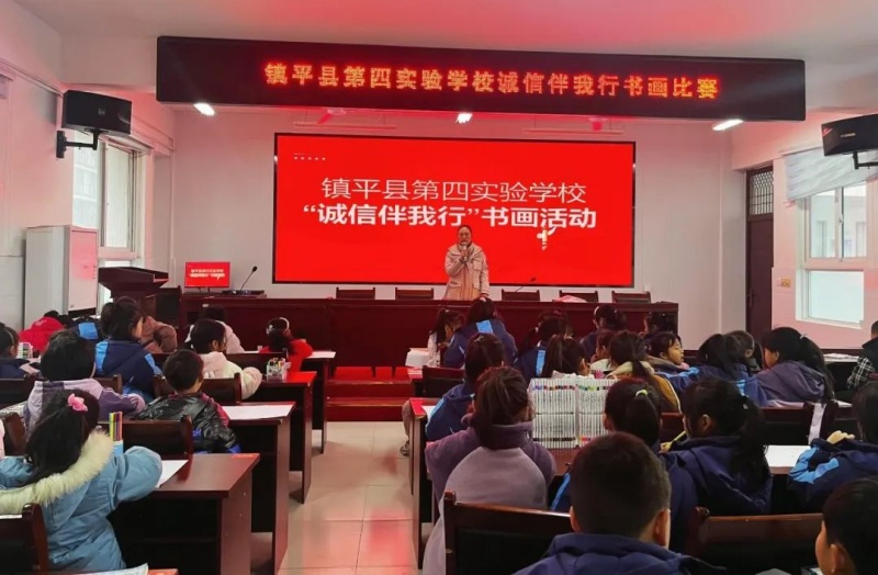 3月14日上午,镇平县第四实验学校举办“诚信伴我行”书画比赛。来自各年级的百余名学生以笔为媒、以墨传情,用艺术语言诠释诚信内涵,展现青春风采。