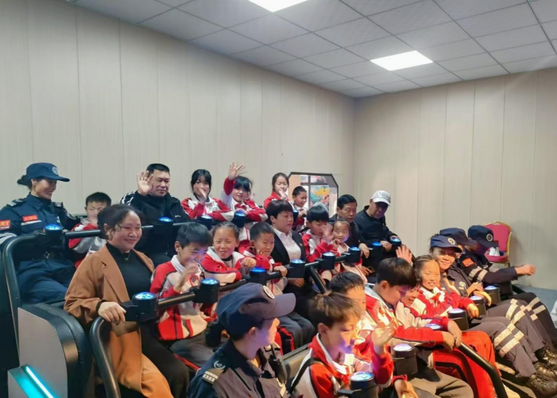 在红岭山庄内,师生们体验了惊险刺激的9D影片。有的学生情不自禁伸手触碰空中“飞过”的子弹,“原来历史书上的文字真的会动!”镇平雷锋营战士在观影后现场展示现代骑兵装备,时空对话中彰显红色基因的薪火相传。