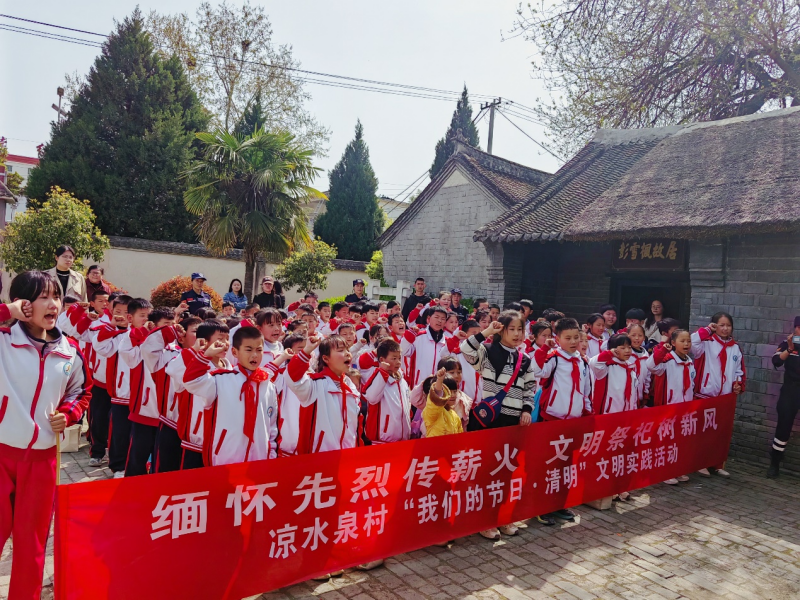 4月3日上午8时,镇平县凉水泉村村“两委”、市政府驻村工作队10多名党员干部与村小学90余名师生一起,在镇平雷锋营志愿者的共同参与下,开展主题为“缅怀先烈传薪火 文明祭祀树新风”的清明系列文明实践活动。