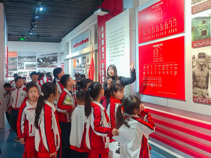上午11时20分,彭雪枫纪念堂内庄严肃穆。两名少先队员托举花篮庄重前行,红领巾与党徽在金菊丛中交相辉映。“我们是共产主义接班人!”童声合唱划破长空,80多岁的老党员热泪盈眶。跟随解说员穿越“长征史诗”全景长廊时,一名学生在日记本上写道:“将军的牛皮公文包打了38个补丁,比我的书包还旧......”