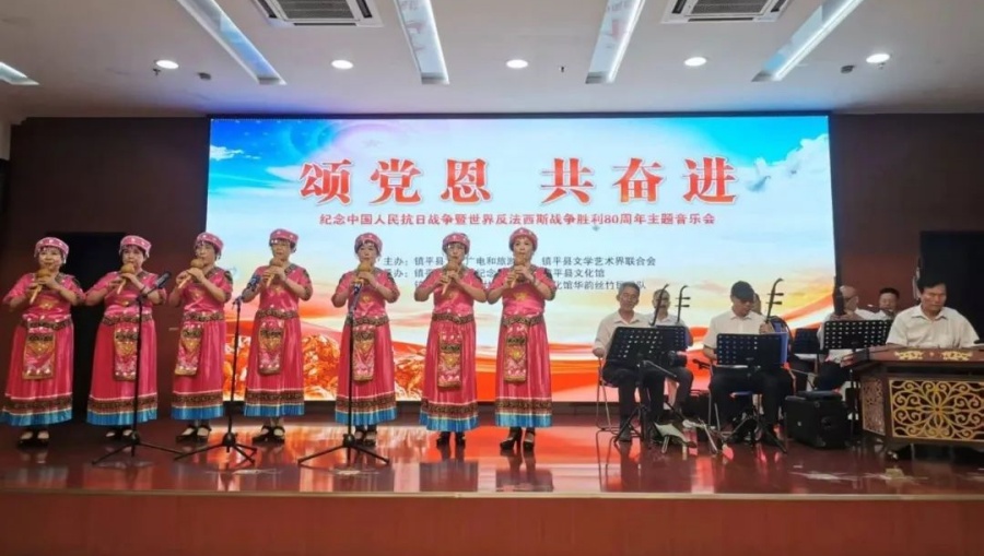 6月26日下午,镇平县举办庆祝中国共产党成立104周年音乐会,该音乐会以“颂党恩,共奋进”纪念中国人民抗日战争暨世界反法西斯战争胜利80周年为主题,全县党员代表,相关单位负责人,群众代表参加了音乐会。