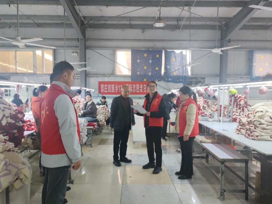 12月4日上午,身着红马甲的志愿者服务队走进乡内裕达针织生产车间——机器轰鸣中,堆叠的布料与忙碌的工人尽显生产活力。