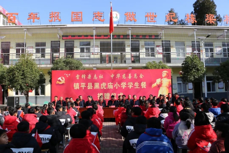 12月13日,《雷锋杂志社》、 中华慈善总会学生营养餐捐赠活动走进镇平县高丘镇黑虎庙小学,弘扬雷锋精神,传递社会正能量。