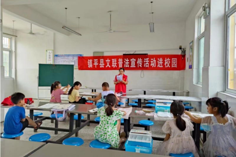 七一前夕,镇平县文联的文艺志愿者们来到安子营镇辛庄小学,开展法治教育宣传活动,为这里的孩子们带来《未成年人保护法》知识教育。