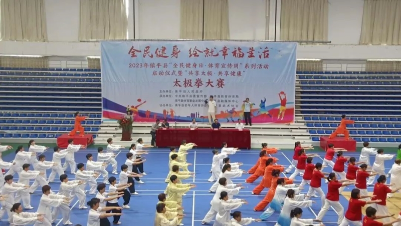 2023年8月8日是我国第15个“全民健身日”,当天上午,2023年镇平县“全民健身日·体育宣传周”启动仪式暨“共享太极·共享健康”镇平县太极拳大赛正式启动,进一步树立全域体育、全民体育、终身体育的健身理念,掀起新一轮全民健身热潮。