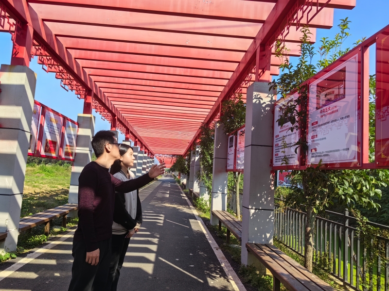 每到周末,在镇平县雪枫街道七里庄村,由162块版面组成的“红色文化长廊”前,围满了前来“打卡”的游客们。