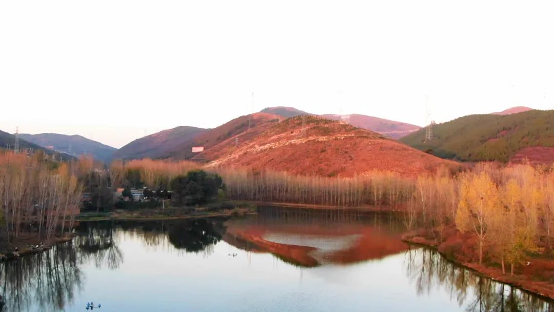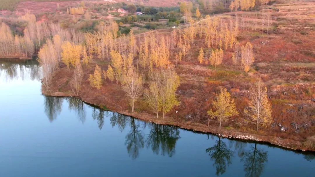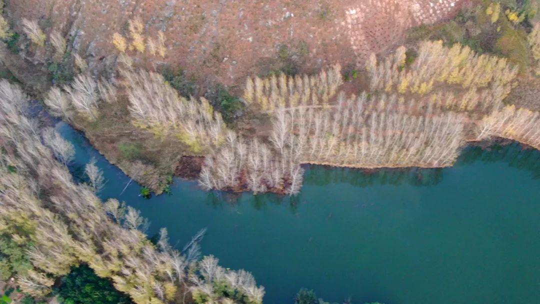 清泉水库坐落于城北玉都街道唐庙后村的杏花山之间,山、水、杨树围合成一个人间秘境。天气好时湖面映射出深浅不一的蓝色,被杏花山拥着的水面就像镶嵌的宝石。青山绿水,如梦如幻。