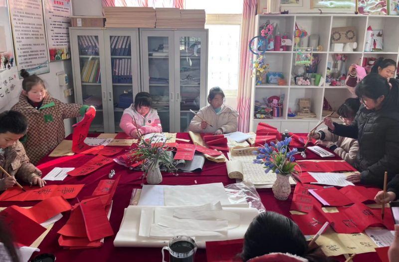 镇平县杨营小学:翰墨飘香迎龙年 师生同心写春联