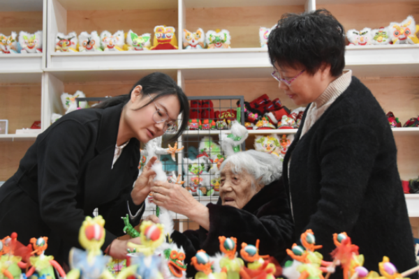 从外婆侯显珍、女儿赵艳华到外孙女闫飞雪,祖孙三代倾力传承,生肖布艺是她们每年都要创作的题材,“舞龙”“龙灯”“巨龙腾飞”……一个个龙的造型传神精致、栩栩如生,用精湛技艺展现龙之神韵,将传统技艺与现代工艺相结合,古典艺术与时代主旋律完美融合的布艺品,一针一线,“绣”出浓浓年味。
