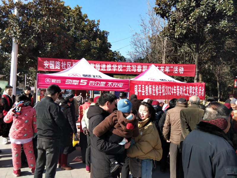 1月24日,镇平县安国路社区和教师进修学校携手联建“共写春联同过龙年”新时代文明实践活动,组织书法大家,深入安国路玉兰广场社区,免费为居民书写春联,提前送上新年的祝福。
