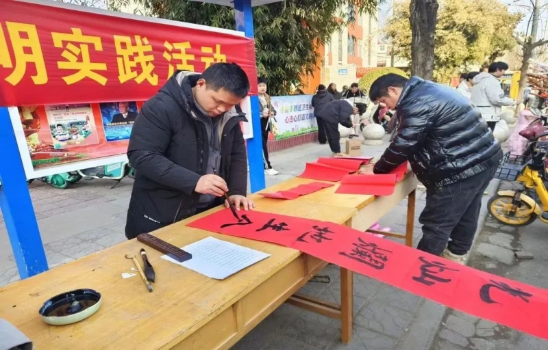 龙腾虎跃新时代,强国富民好运程。1月27日,镇平县雪枫中学开展“写春联送祝福”新时代文明实践活动。