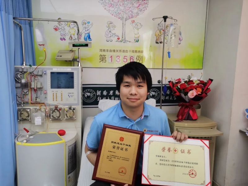 3月11日,岁翰彬顺利完成了200余毫升造血干细胞悬浮液的采集,成为河南省第1356例、南阳市第104例造血干细胞捐献者。这份承载着希望的“生命种子”将被第一时间送出,为远方正在和病魔抗争的患者送去重生的希望。
