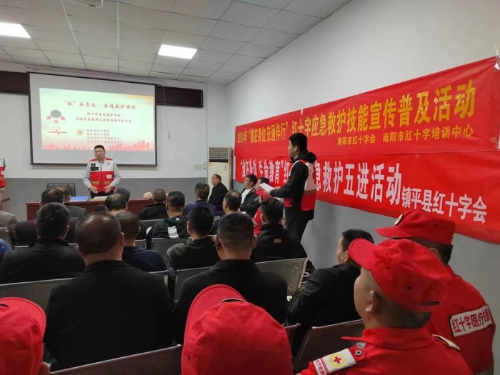 救在身边,交通伴行。日前,南阳市红十字会、镇平县红十字会、南阳市红十字培训中心和镇平县红十字医疗救援队,赴宛东公交镇平分公司开展驾驶员应急救护知识培训活动,为全体驾驶员送上一堂生动的应急救护知识课。