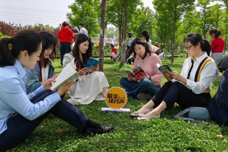 4月23日,镇平县新华书店在赵河公园开展了“春天‘野’要读书”荐书活动。
