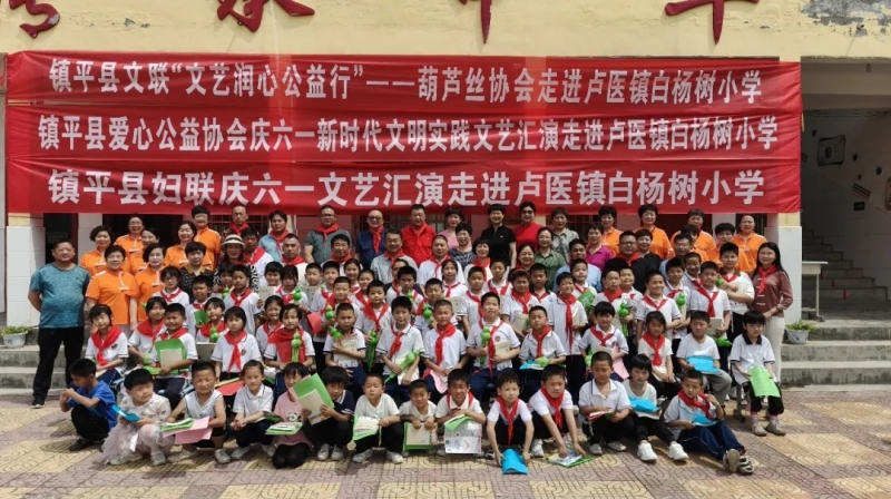 5月28日,镇平县教体局、县文联、县妇联、县精神文明建设促进中心等社会团体负责人深入卢医镇白杨树小学开展庆“六一”慰问演出活动。
