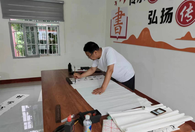 活动现场,书法爱好者们以饱满的热情挥毫泼墨,一幅幅作品或苍劲有力,或行云流水,优美灵动,飘逸潇洒。大家边书写边交流学习,整场活动始终洋溢着热烈欢乐的气氛。此次活动吸引了十几名不同年龄段书法爱好者参与。