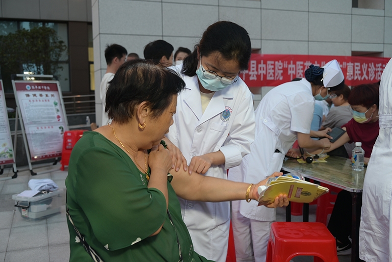 在中医义诊摊位上,来自镇平县中医院脑病科、心病科、肝胆脾胃科等科室的医护人员,为群众免费测量血压,把脉问诊,开具药方,并给出合理的治疗建议。在中医非药物疗法体验区,医护人员为前来就诊咨询的群众免费贴三伏贴,发放宣传资料,疼痛患者现场体验针灸推拿等中医特色疗法,温馨的服务和精湛的医术得到了市民的高度赞扬。
