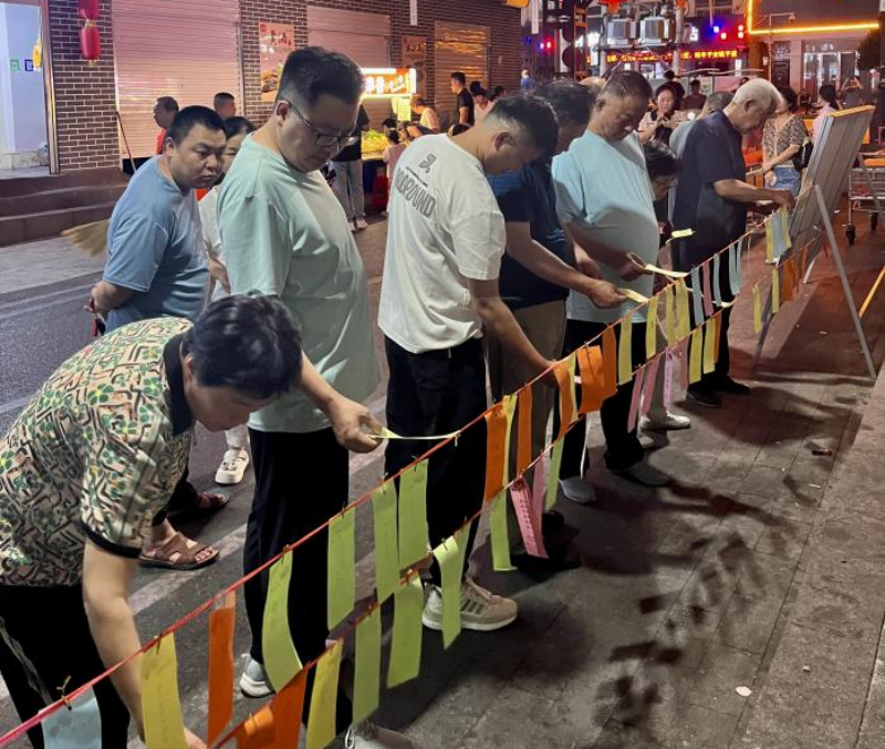 三联路美食街里人头攒动,欢声笑语不断。居民们在集市中穿梭,有的在认真挑选心仪的商品,有的则是带着孩子感受着传统的节日氛围。一位带着孩子的居民开心地说道:“这样的活动太有意义了,不仅让孩子们感受到了传统文化的魅力,也让我们这些大人找回了童年的乐趣。”