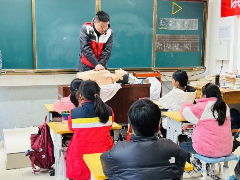 市红十字培训中心老师向在校学生宣讲急救知识,普及应急救护技能。活动现场,通过现场演示和互动教学的方式,详细讲解了心肺复苏、海姆立克急救操作等常见急救技能的操作步骤和注意事项。在实际操作环节,大家踊跃尝试,在老师手把手的指导下,认真练习心肺复苏的按压节奏、人工呼吸的技巧。通过亲身体验,增强了学生的安全意识,使同学们深刻认识到应急救护的重要性。