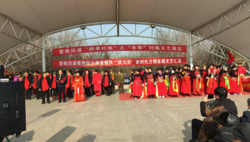 12月29日下午,镇平县雪枫植物园中心舞台热闹非凡,由雪枫街道办事处主办、雪枫植物园“乐缘”歌舞队承办的“庆元旦·颂党恩”新时代文明实践文艺汇演在此开演。