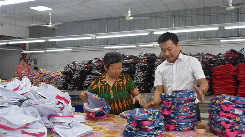 产业的兴旺发达,总是离不开贤达能人的鼎力支持。镇平县老庄镇耀中贸易赵丰涛,是带技术、带生产线、带订单回乡创业的代表。回乡后带领10名员工,从皮手袋加工作坊做起。目前在老庄镇、杨营镇、二龙乡、彭营镇等8个乡镇使用10多个扶贫车间,生产箱包和玩具,带动当地230人就业,人均年薪酬2万元左右。