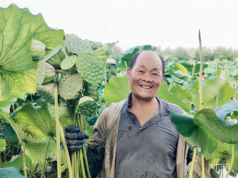 莲蓬大丰收,莲农笑开颜(央广网发 时君洋 摄)
