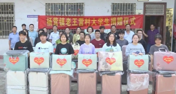 活动中,爱心企业向老王营村15名大学新生捐助了拉杆箱、太空被、书包等生活、学习用品。杨营镇党委政府及捐助企业勉励受助学生,希望他们树立远大理想和抱负,以只争朝夕的精神,勤奋学习、努力拼搏,把社会各界的真心关爱,转化为回报社会、建设家乡的强大动力,奉献青春智慧,谱写人生华章。