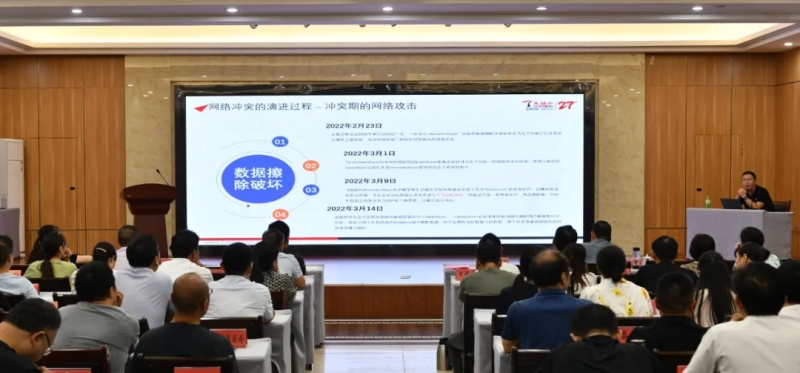活动现场,天融信科技集团河南平台技术经理为参会人员就网络安全进行培训。(通讯员 杨舰凯 时君洋)
